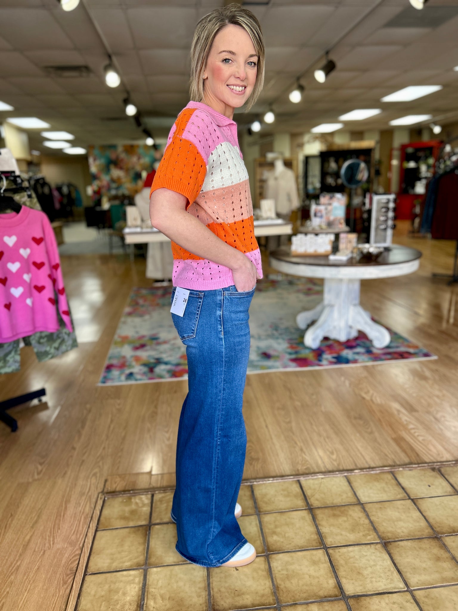 Meet your new everyday favorite denim. These high-rise jeans feature a flattering straight-to-wide leg silhouette with a relaxed fit through the leg for effortless comfort and style. Designed with classic five-pocket styling and a medium wash that pairs perfectly with everything, these jeans are easy to dress up or down. Finished with a structured feel that holds its shape while still allowing all-day wearability.